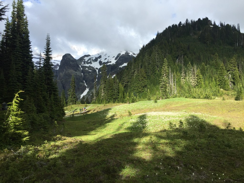 Day 2 – Devils Dream to North Puyallup Campground. Great start through Indian Henry’s Hunting Ground. Some snow patches on trails. Great climb through Emerald Ridge down to South Puyallup Campground. St Andrews Lake was mostly frozen. Klapatche Park was covered in avalanche lilies. North Puyallup River campground was a great spot to camp for the night.
