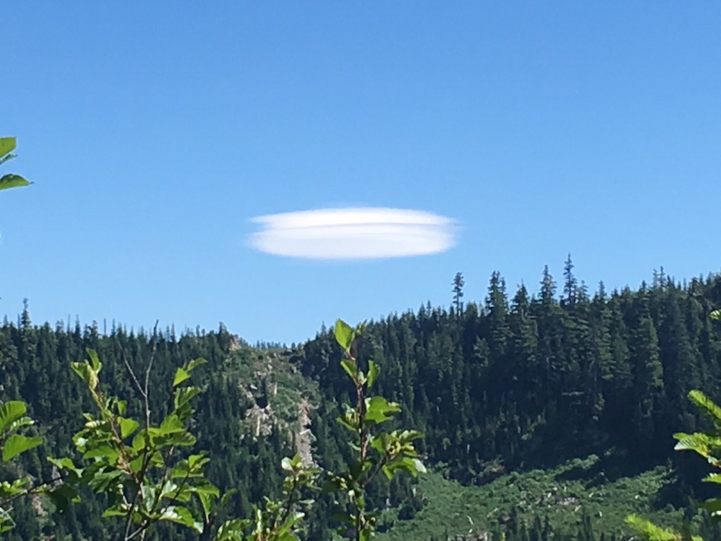 This was a lop hike, up the Washington trail, taking the Great Wall Route to the summit, and back down the main route. Appears some work on the road grade path between the main trail and Great Wall route as up the final Great Wall route, the trail had been dug and tore up and we had to scamper across a lot of old trees and other debris. I love the Great Wall route as it follows the upper reaches of the mountain, connecting to the Change Creek old logging road which is a nice elevated highway with great views to the east of McClellan and the I90 corridor – Mailbox, Dirtbox, Dirty Harrys. Web, PPP and Defiance are all in view. Wildflowers were blooming and for the first time, I saw a lenticular cloud in the wild. They do look like flying saucers. A great day out with the family.