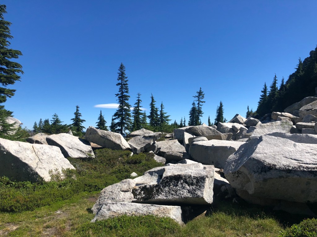 Granite Mountain 2.0 – made the lookout today. An earlier trip in June ended up 300 feet short due to a summer storm. Perfect day for Granite Mountain. No smoke. This is a must do hike in the month of September. Why??? Huckleberries! Millions everywhere above the forest. Pack a container and plan to enjoy them. Super sweet.