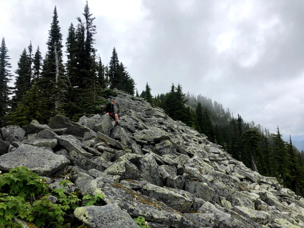 Rhone and I decided to do an afternoon hike. Selecting Pratt Mountain as our destination as it’s on the Home Court 100 and we have been keen to explore the area behind Bandera Mountain and see the Pratt River valley. We departed at about 1:45 PM and found a parking spot in the main area! We took the Talapus trailhead and circumnavigated Olallie lake clockwise, taking the boot path at the north end of the lake to connect with the Pratt Lake trail just below the ridge connecting to Tusk O’ Granite. We followed the route provided by TheDavil on June 15th (thanks!), entering the talus field at the switchback just prior to descending to Island and Rainbow lakes. We traversed Northwest, following a series of cairns which led to the main talus field and also Northwest in direction, which will position you West of the summit. Ascend straight up to get directionally correct with the summit.