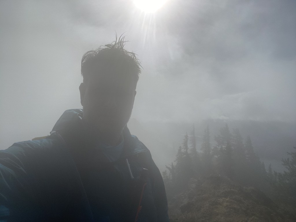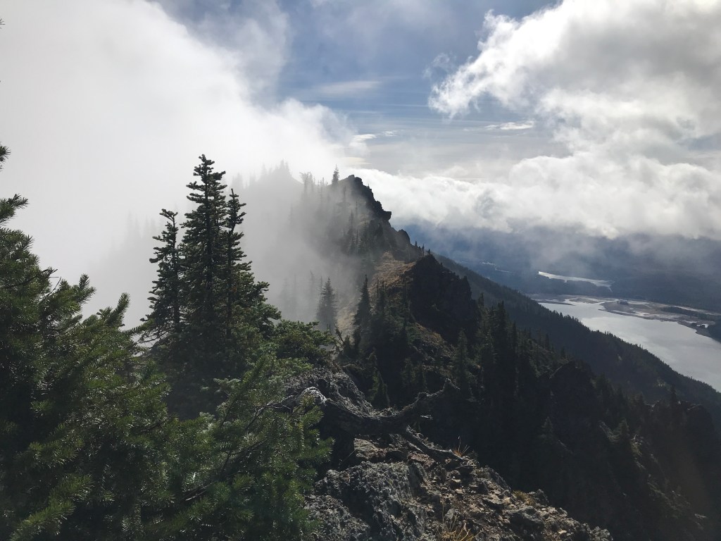 Upon descending the dirt gully, we make a direct ascent for the saddle between French Tongue and Kachess Ridge, to a rock formation resembling a large throne – I have seen it referred to as the French Pimple in other trip reports. We traversed the ridge to the true summit, encountered some blustery winds, and opted to switch between the left and right of the ridge depending on the terrain – some were forested, some exposed good rock, some loose dirt. On the second to last high spot on the ridge, the right (West) had some good rock, but we opted to initially descend to the dirt on the left, then ascending the final summit through brush and trees.