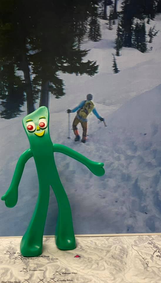We took the ridge out enjoying the late afternoon views of the peaks to the West. As we reached the point of descent down the final steep path, we donned our microspikes and had more success following the flagging down, realizing our navigation mistakes from earlier in the day. About halfway down the path, I realized that I recognized almost none of the trail. I must have blocked out the memory of the ascent, but it seemed completely foreign. I know on many trips, descending at the end of a climb that I often realize just how long some of these trips and ascents are, as I am reminded on the way down, and often amazed and surprised at just how long or far up we came earlier in the day. This is a beautiful mountain to climb. I am so happy to have done it with a lot of snow cover as the gully in the summer does not look as appealing. South Baring has some appeal as an objective, and why not, we nearly inadvertently climbed it from the forest.