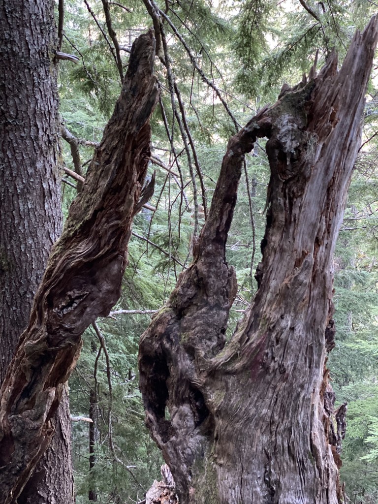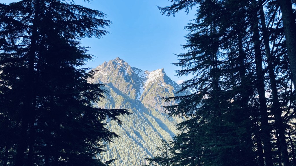 Many people complain about the difficulty, roughness, and downright crappy terrain up this path. I found parts to be quite beautiful. There are many interesting rock formations and amazing giant trees and roots growing around the rocks resembling a giant bonsai garden. Just be aware that as you ascend, there are a couple of spots about 2/3rd of the way up that have some significant exposure on the right side of the path. A fall would be most unfortunate. As we ascended, Tailgunner, Wing, and Merchant Peaks come into view (peaks to add to the ever-increasing list of things one must climb), revealing breathtaking mountain vistas – which were only better on the descent in the waning sunlight of the evening’s Alpenglow. My advice for this section is to don your microspikes when you hit the snow as it will make the uphill progress much faster. We also wore ours the entire descent from the ridge as the dirt is steep, loose, and overall it just helped us with our stability.