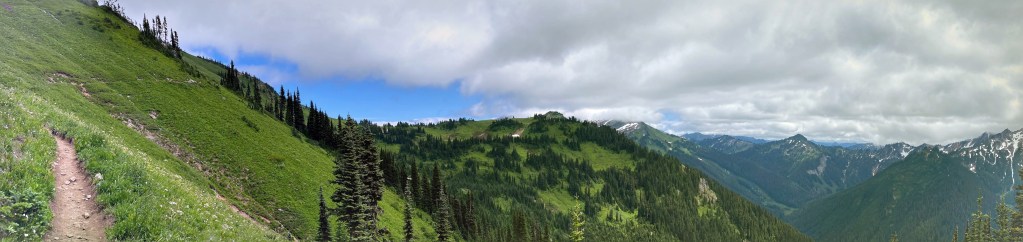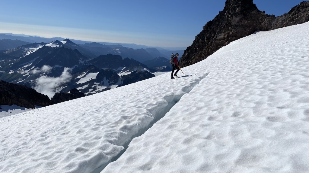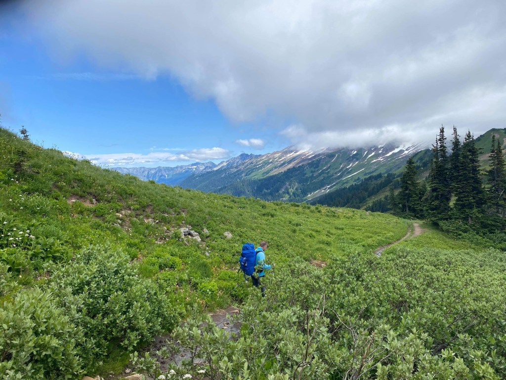 We made our way through the Disappointment Cleaver/Gerdine Ridge trail to Foam Pass and prepared to make our way down through the alpine meadows.