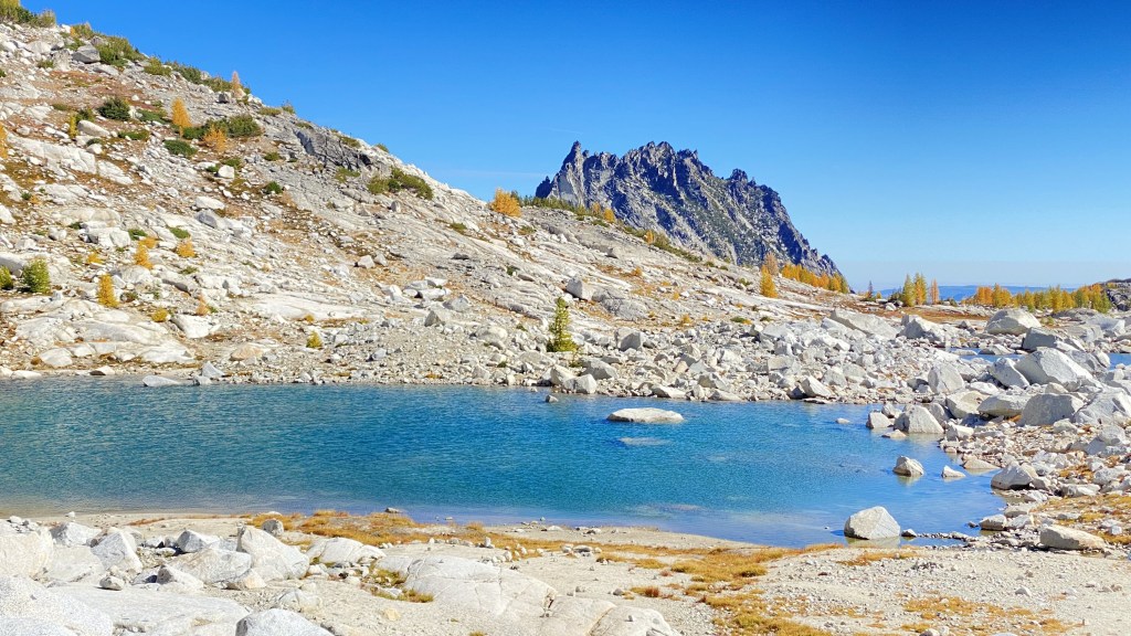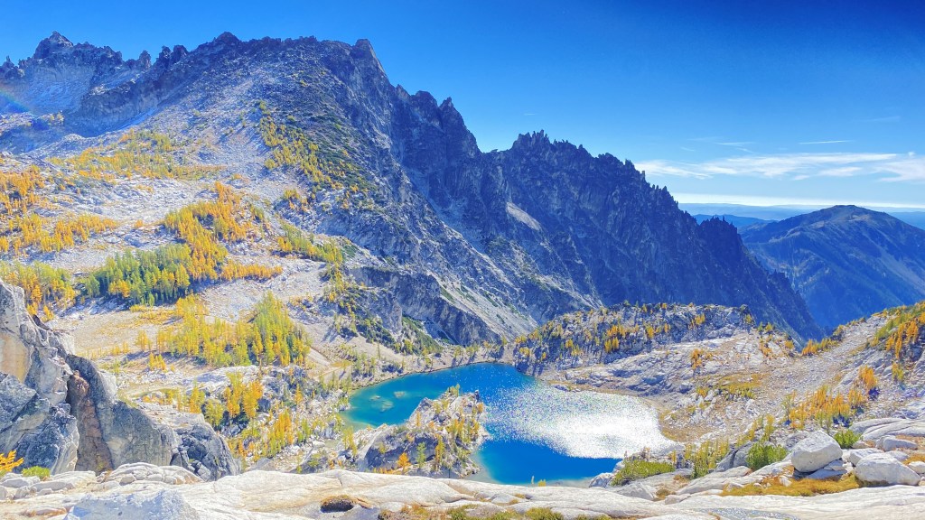 Views ascending Aasgard Pass. The view of Dragon Tail changes as you climb. I love how the larches are out in full display. First time I have seen them in the Enchantments. Clearly a well-named place! Note that all my photos here, except where noted, have no filters applied. This is one of the most beautiful places in the world.