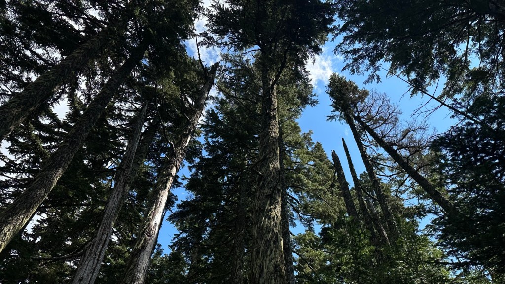 We finally made the ridge to the summit. The trees here are much more mature than the ones lower down the mountain and covered in beard moss.
