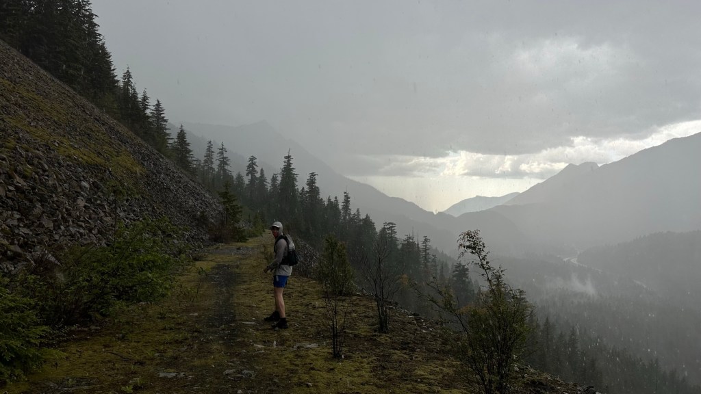 Literally chasing daylight as a thunderstorm rolled in and pelted us with pea-sized hail and hard rain. Of course, I left my shell at home as the weather was supposed to be sunny – never again. We went down as fast as possible and ran through the stream crossings as the rocks were too slick to navigate safely.